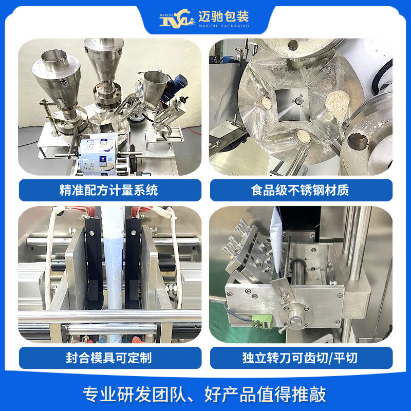 1.全自动颗粒三边封包装机能全自动完成上料拉袋、制袋、充填、计量、封口、切袋、计数、打码、输出等等一系列自动化程序。