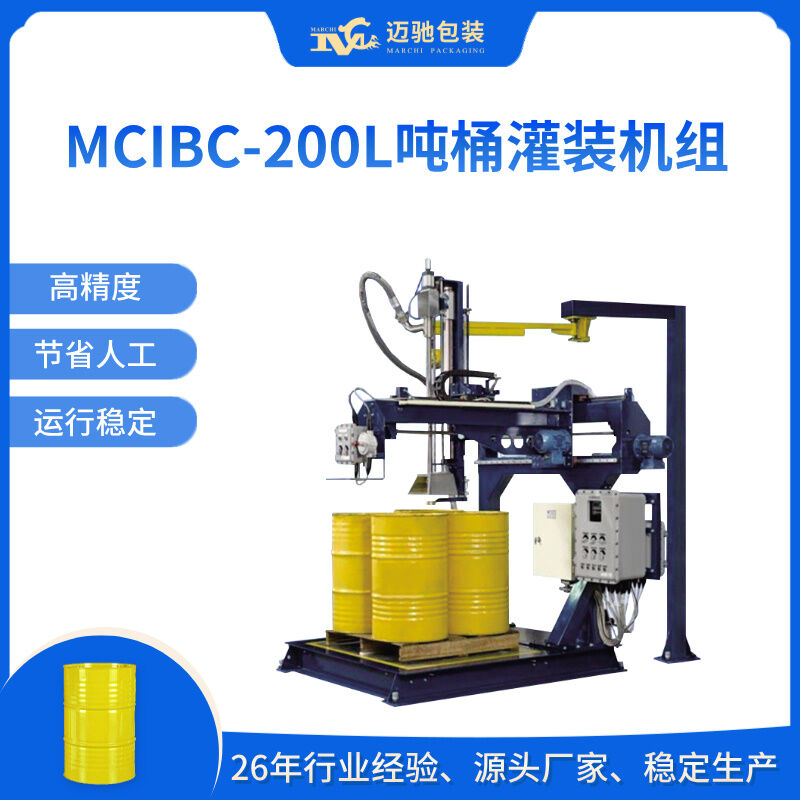 当选择吨桶配方时,操作灌枪手柄,把灌枪移至称重台中心位置,无须人工对准桶口,灌枪自动插入桶口下方3~5cm处),空桶自动去皮,自动打开灌枪及球阀开始灌装,大、小、微量三段精确灌装,到达目标值,灌枪自动关闭并升至桶外,人工锁完盖,叉车运走。